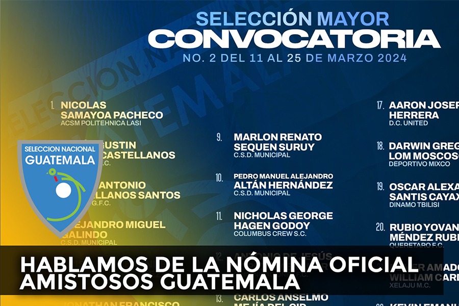 Destaca en el listado la inclusión de siete jugadores de Municipal, actualmente en el quinto lugar de la tabla general del presente Torneo Clausura 2024, cinco de Comunicaciones el vigente campeón, dos de Antigua GFC, dos de Xelajú MC, uno de Xelajú MC y los legionarios Óscar Santis, Nicolás Samayoa, Nicholas Hagen y Aaron Herrera.