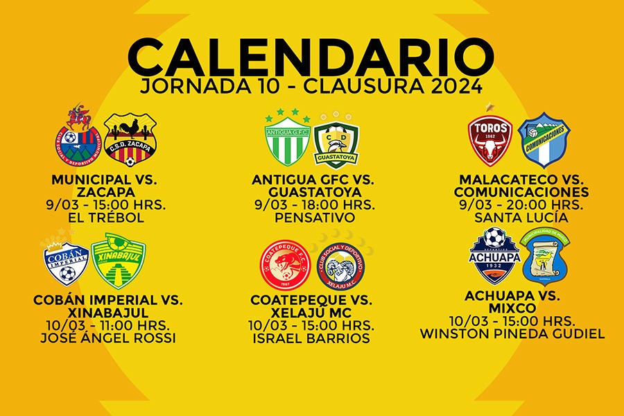 Junto a René del Cid, analizamos la previa de la décima jornada de la Liga Nacional de Guatemala, en la jornada de sábado Municipal enfrentará en el Manuel Felipe Carrera a Zacapa, Antigua GFC recibe a Guastatoya en el Pensativo y Malacateco enfrentará a Comunicaciones. El domingo Cobán Imperial con la baja del uruguayo Diego Casas enfrentará a “La X” en el José Ángel Rossi, Coatepeque a Xelajú y Achuapa contra el actual líder del torneo Mixco.